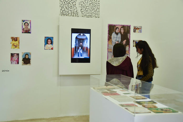 Dans une première salle, des archives photographiques personnelles côtoient des archives historiques du discours sur la condition de la femme marocaine, notamment à travers les écrits de figures telles que Fatima Mernissi et Zakya Daoud à l'époque de la revue Lamalif. Dans une autre salle, trônent 11 autoportraits tirés en grands formats en même temps que la documentation de leur processus: instantanés photographiques des premiers essais, vidéos du processus décrivant les méandres du choix esthétique (cadrage, composition, lumière, etc.). Enfin, une salle minimale et interactive fait des visiteurs des complices et témoins des vies personnelles des Mamans Douées en les invitant à faire défiler les images à partir de téléphones portables accrochés à hauteur d'œil.